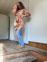 This item is one-of-a-kind; there is only one in stock. Model wears size small in Hazel. The sleeve hems are pinned in these photos; the buyer may select the length they want the sleeves to be hemmed at by sending Olivia a message in the Contact section of the website.