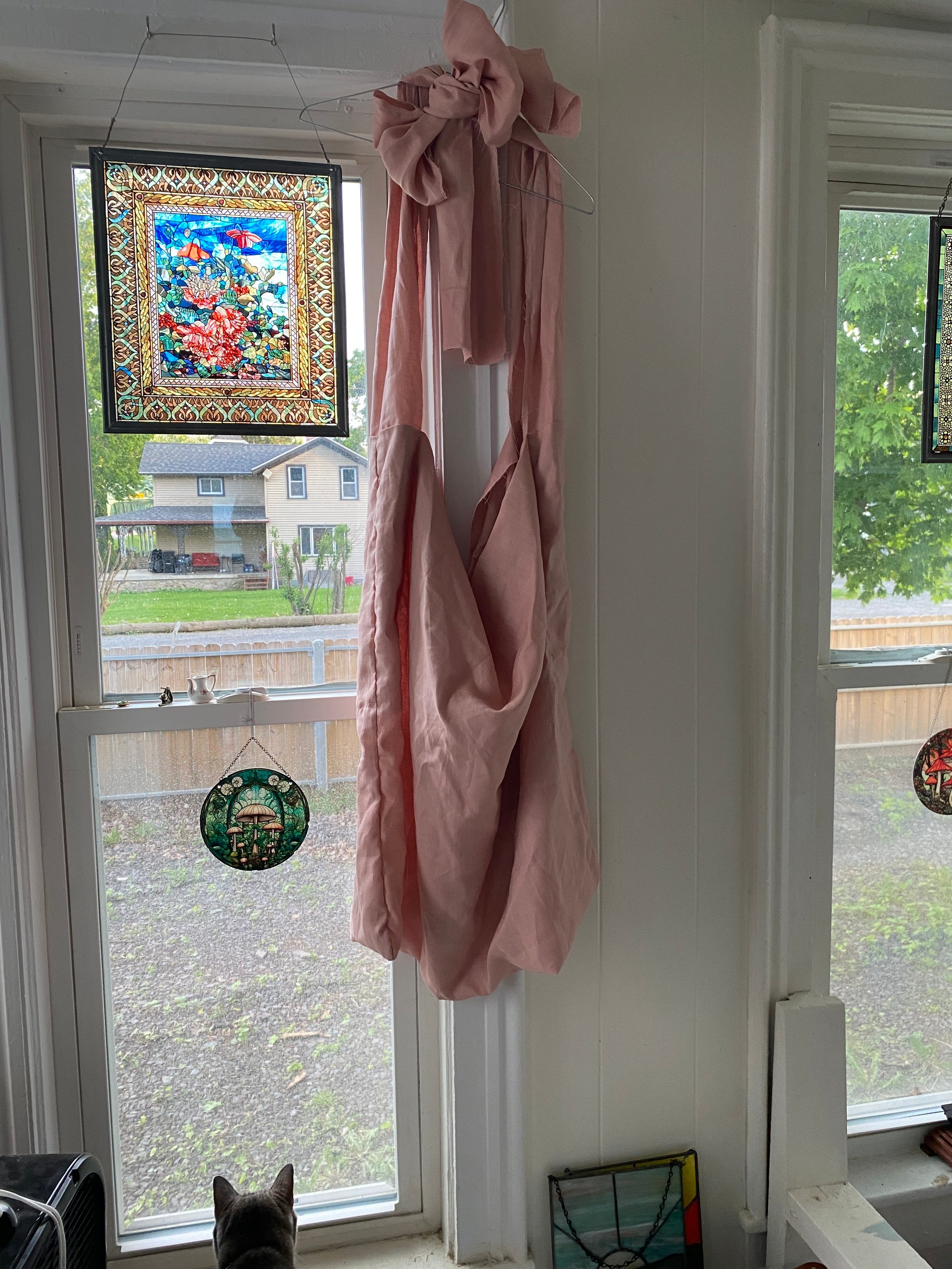 Olivia made this bag, in vintage blush, to carry her extra changes of clothes, shoes, and accessories to a fashion show. If the buyer prefers this bag in another color of linen, they may DM Olivia or send her a message in the Contact section of this website to see what colors are available. Extra charges for Olivia shipping a new fabric color to herself might apply in that case.